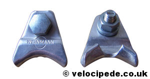 Vintage 1970-80’s brake hangers from Weinmann, based on the standard Mafac design. Manufactured from aluminium plate with an M5 bolt, nut and 2 x washer combination.