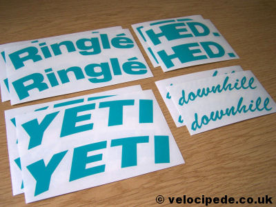 HED/Yeti/Ringle “Downhill” 16-piece decal kit for deep section carbon 26″ mountain bike wheels. This is enough for one pair of wheels with 4 different decals on each side.